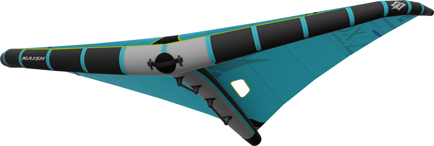 - Leading Edge Center Grab Handle = With Rubber Inlay Grip Stripes for comfort & Neoprene Patch protects the hand when flagging the wing on a downwinder or while wave riding